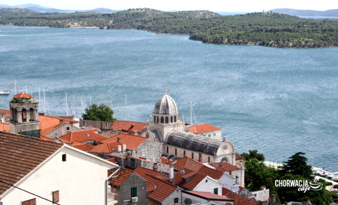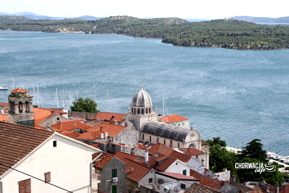 Katedrę warto również podziwiać z góry! Można wspiąć się na około 70-metrowe wzgórze – tam znajduje się twierdza św. Michała (Tvrđava Sv. Mihovila) – stamtąd widać katedrę w całej okazałości. Dodatkowo rozpościera się piękny widok na całe Stare Miasto. Zobaczcie sami: