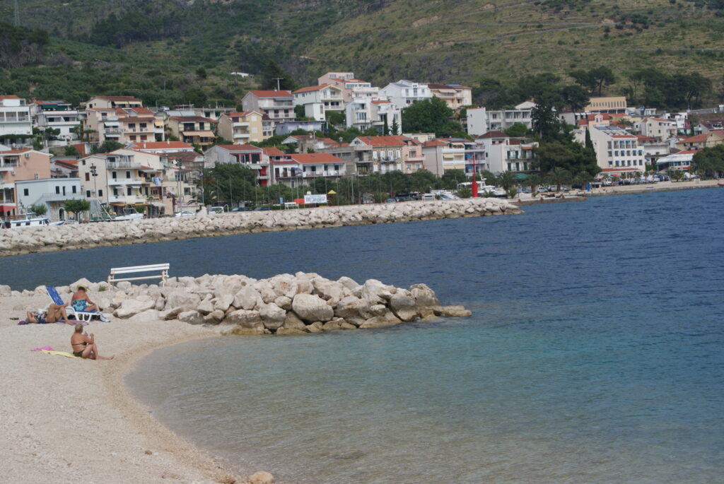 4. Spacer do Čaklje – Čaklje to część Podgory, która znajduje się około 2 km od centrum Podgory. To tak naprawdę jedna główna ulica, a większość znajdujących się tam prywatnych kwater znajduje się tuż przy plaży (odległość od plaży to tylko szerokość ulicy, którą trzeba przejść). Główna plaża ciągnie się wzdłuż drogi i jest idealna dla dzieci – ma bardzo łagodne wejście do morza i drobny żwirek.