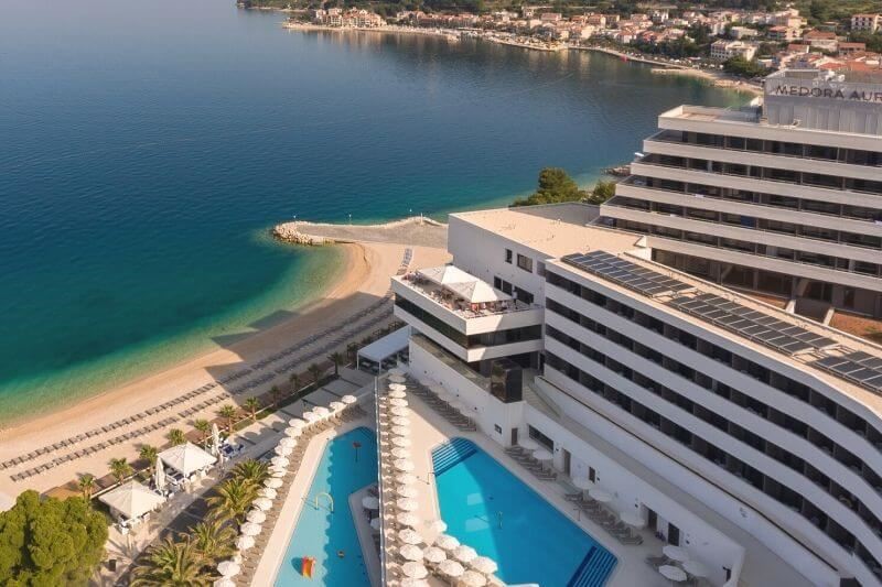 W Podgorze będziemy we wrześniu i chcemy się zatrzymać w hotelu Medora Auri Family Beach Resort. Hotel Medora to nowoczesny, czterogwiazdkowy hotel położony na obrzeżach miasteczka z dość dużym terenem, basenem, ale przede wszystkim z cudownymi apartamentami z własnym tarasem z widokiem na morze. Hotel jest wprost idealnym miejscem na rodzinne wakacje lub wypad we dwoje. Hotel oferuje swoim Gościom komfortowo wyposażone pokoje z urzekającym widokiem na morze lub na masyw gór Biokovo, hotelowe restauracje, restauracje zewnętrzne z widokiem na morze oraz niezwykle bogatą ofertę zaprojektowaną z myślą o zabawie i beztroskich wakacjach dla rodzin z dziećmi, m.in. specjalnie zaprojektowane zajęcia dla najmłodszych w ramach programów animacyjnych, takich jak zajęcia na plaży i przy basenie, pokoje i sale zabaw dla dzieci, a także garść warsztatów plastycznych i mini disco dla dzieci organizowane przy hotelowym basenie. Będzie pięknie, już nie możemy się doczekać tych widoków 🙂