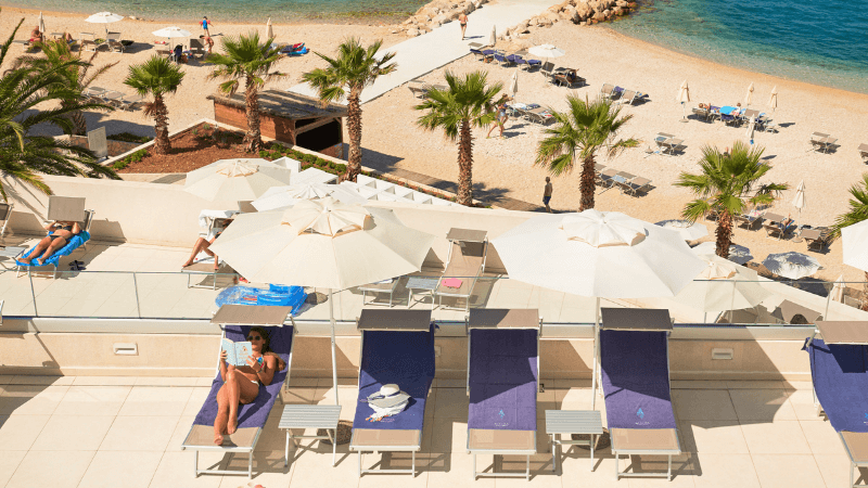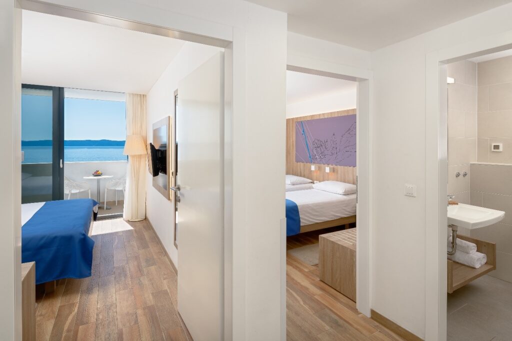 Jeśli chodzi o zakwaterowanie, opcje są różne. Wszystkie możliwości możecie sprawdzić TU. Wszystko zależy, czy wybieracie się na idealny romantyczny wypad we dwoje (wtedy wybierzcie pokój dwuosobowy), czy planujecie rodzinne wakacje i potrzebujecie pokoju rodzinnego (w hotelu możecie w tym wypadku wybrać pokój rodzinny składający się z dwóch połączonych sypialni). Hotel dysponuje także przestronnymi pokojami typu suites, które charakteryzują się przestronnym tarasem z panoramicznym widokiem na Adriatyk.